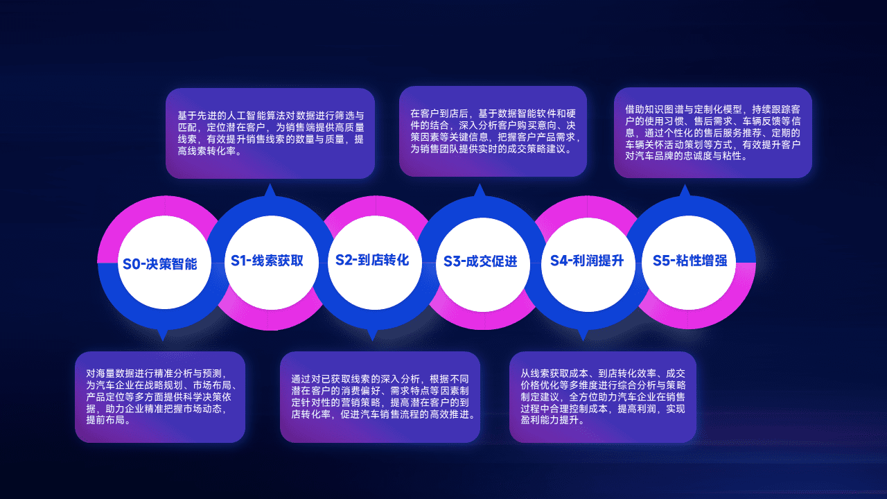 通过拓宽潜在客户来源、、、、优化线索分配并提高到店转化率,,以增强销售效率。。。同时,,利用线索数据不断优化分析模型,,有效提升转化率,,,扩大营销影响力。。。